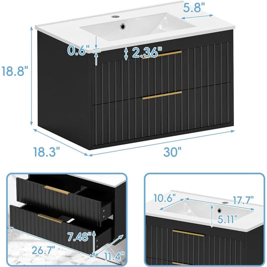Wall Mounted Floating Bathroom Vanity with 2 Big Drawers
