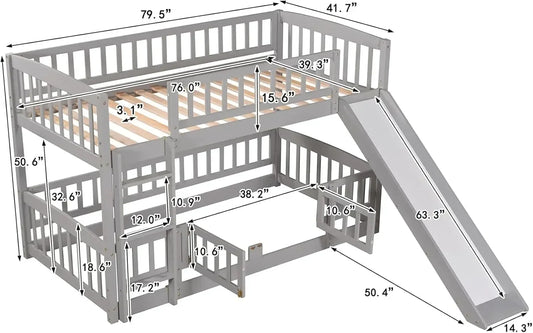 Low Bunk Bed with Slide Twin Over Twin Bunk Beds