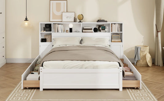 Tall Extended Bookcase Headboard, 6 Drawers and Charging Station
