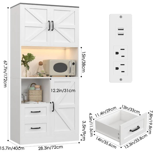 Tall Farmhouse Kitchen Pantry with Barn Doors and Drawers