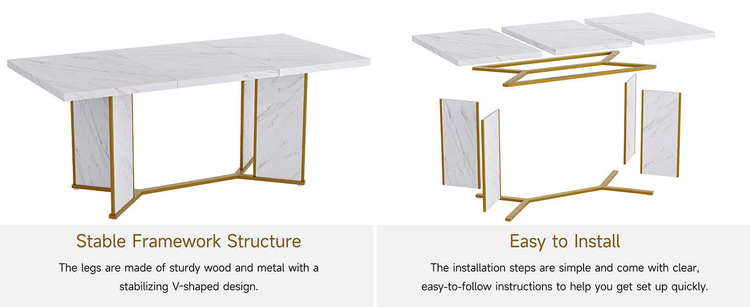 Featuring a realistic marble-patterned veneer, this table combines natural stone aesthetics with practicality. Crafted from lightweight engineered wood, it ensures easy installation and transportation while maintaining elegant appeal.