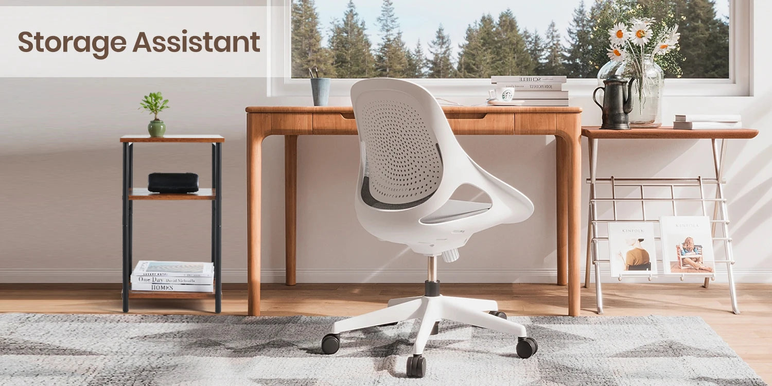 This three- tiered end table is perfect for use in your living room, bedroom, or bathroom. It not only serves as excellent storage furniture but can also be used as a small end table, nightstand, coffee table or temporary tabletop. This space- saving piece is designed to fit seamlessly into any room..