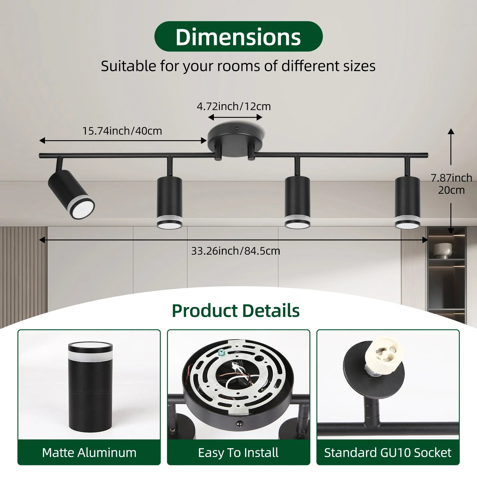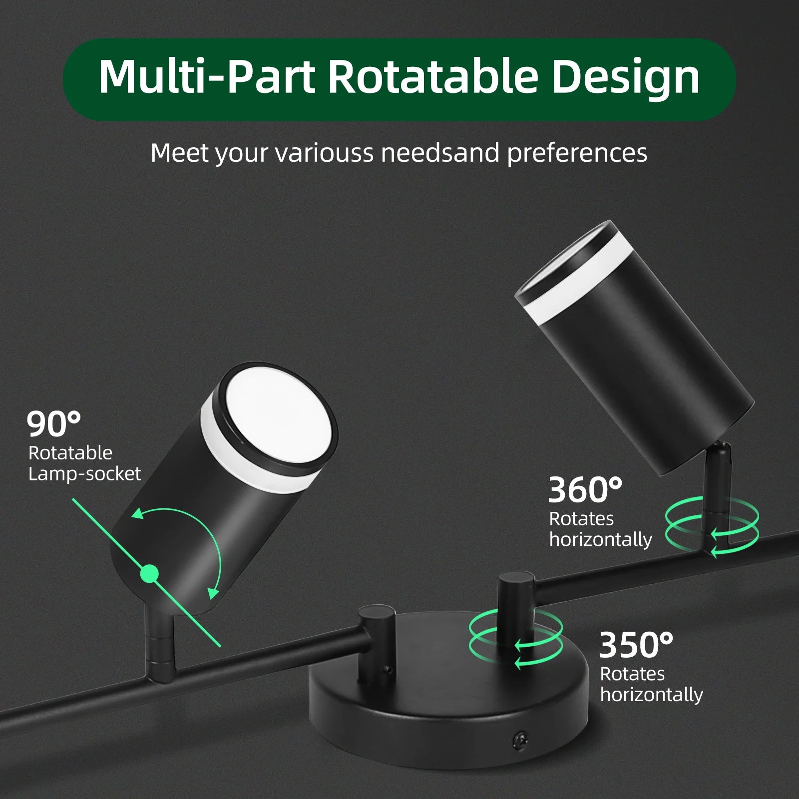 LED Spotlight Black Track Fixture Ceiling Light Rotatable 6 Heads Protective Lamp