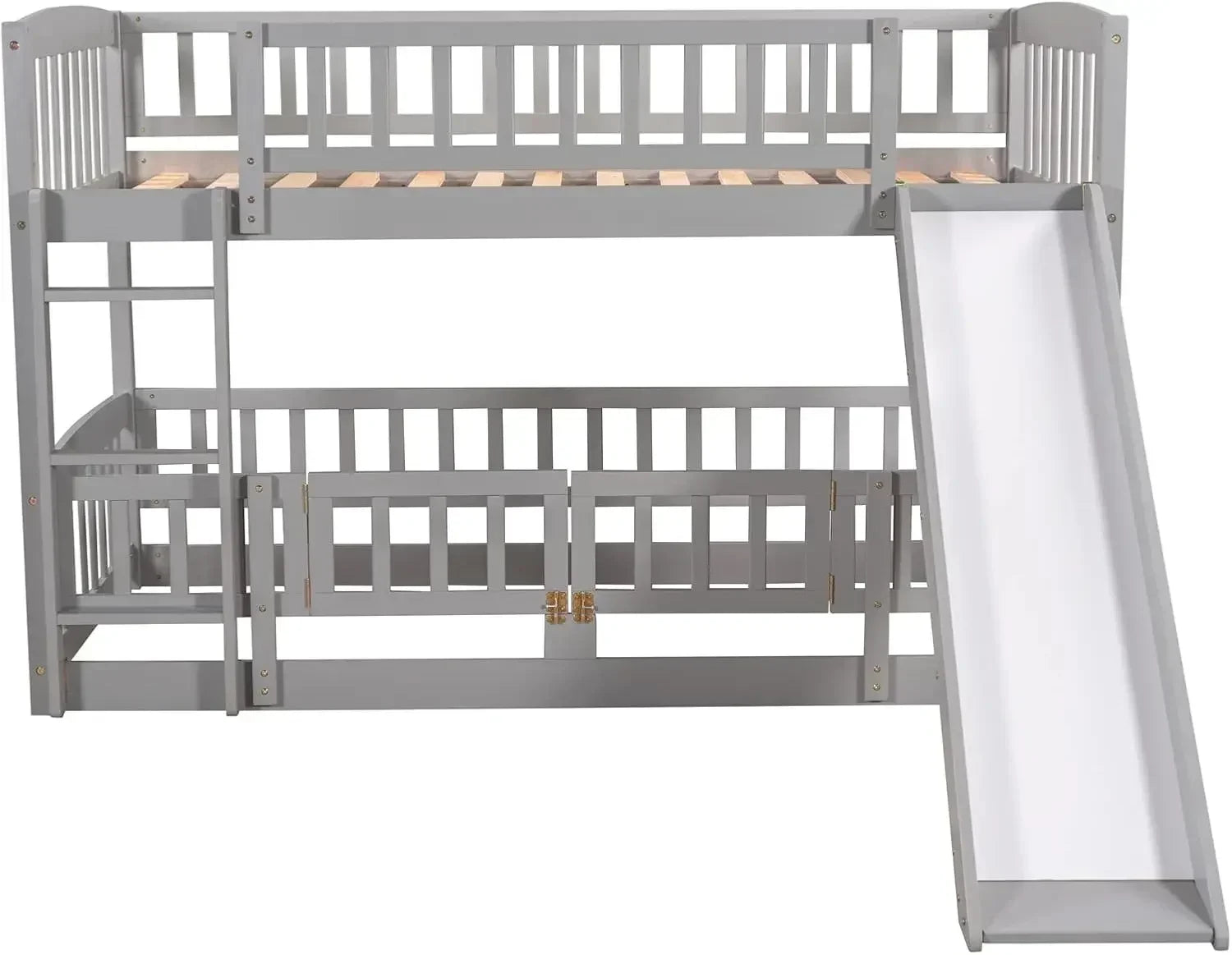 Low Bunk Bed with Slide Twin Over Twin Bunk Beds