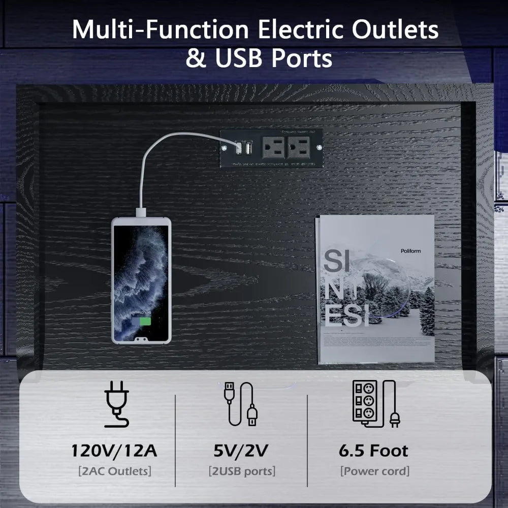 LED Night Stand with 2 Large Drawers]: LED nightstand size 23.6’’H x 13.4’’D x 19.3’’W. The combination of 2 storage drawers and tabletop storage gives this nightstand amazing large storage capacity. The practical design of 2 drawers can meet your daily storage needs and keep your room organized. The suspended space in the middle also brings some storage and display functions.
