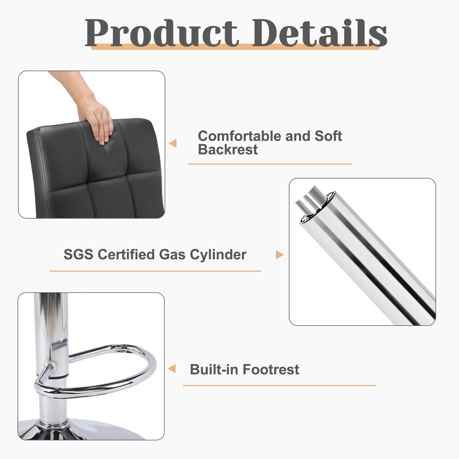 Comfortable Seating :The bar stools feature sponge cushions and durable PU leather, providing a soft seat with a built-in footrest for relaxation.