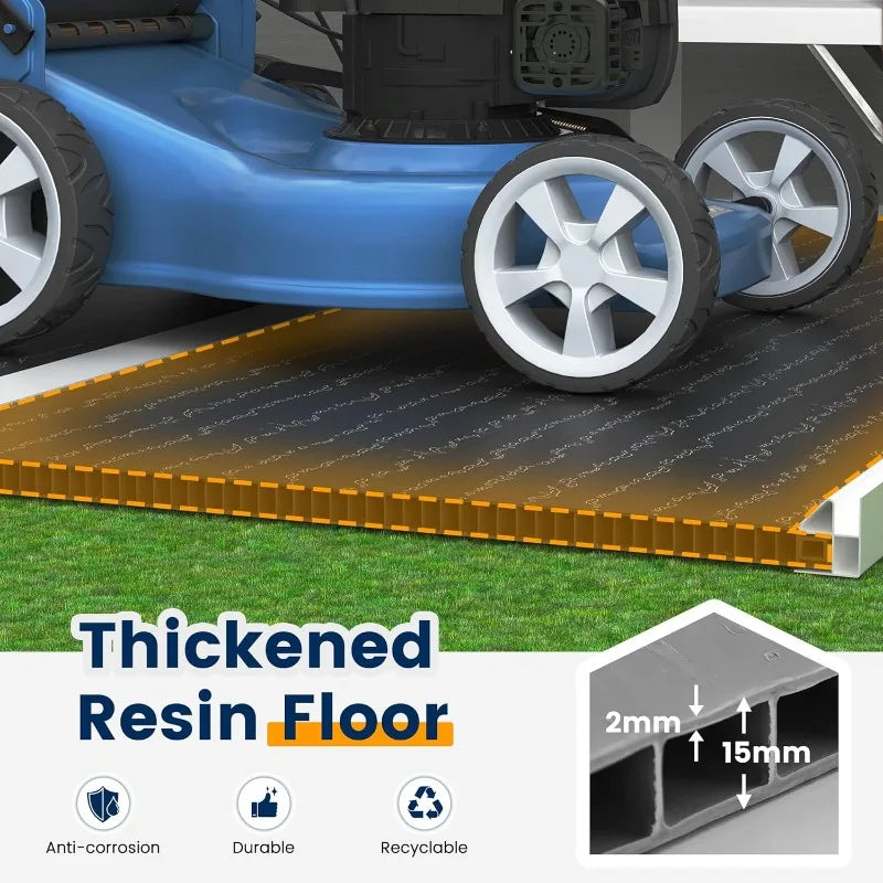 Storage Shed 8 x 10 FT, Resin Outdoor Garden Sheds with Floor Plastic Patio Outdoor Storage with Lockable Door for Tool, Bike