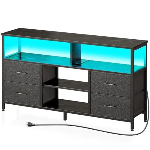 Entertainment Center with Power Outlets: Equipped with 2 AC & 2 USB power outlets, this media console doubles as a convenient charging station for your TV, Wi-Fi router, and gaming equipment. The vertical insertion design ensures a neat and elegant appearance from the frontinstructions included, you'll have this multi-functional piece set up in no time, ready to explore its various uses