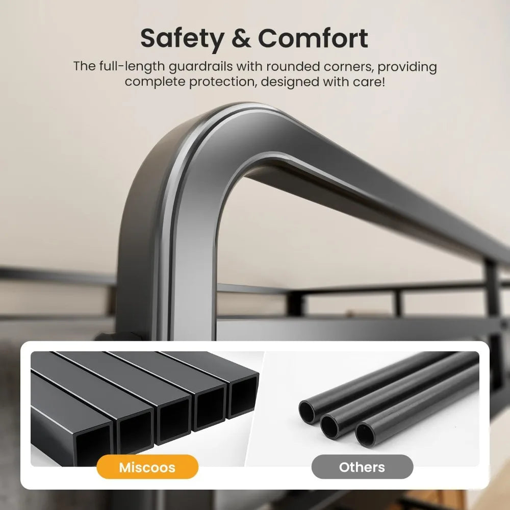 This triple bunk bed is a space-efficient solution for shared rooms, designed to accommodate three twin-sized mattresses vertically. Made from a durable, high-strength steel frame, it offers exceptional stability and is reinforced with metal slats, ensuring long-lasting use with a scratch-resistant powder-coated finish. Safety is a priority, with full-length guardrails on the upper and middle levels and a sturdy ladder for secure climbing. The bunk bed eliminates the need for a box spring, as the metal slats provide ample support for the mattresses, and the heavy-duty frame minimizes movement and noise for a peaceful sleep. Assembly is straightforward, with all tools and clear, labeled instructions included. This bunk bed is compatible with standard twin mattresses (not included) and is easy to maintain.
